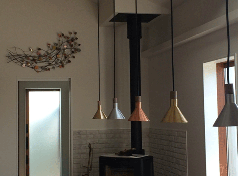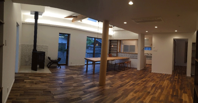 1階には薪ストーブを中心にダンスを楽しめるほどゆったりとしたLDKが広がります。